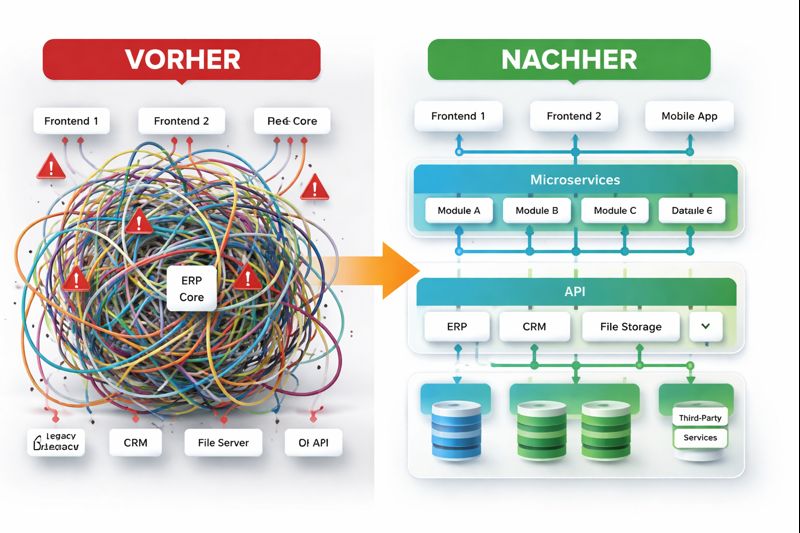 Der Kern ist technisch kritisch, die Geschäftslogik jedoch wertvoll. Empfehlung: gezielte Kapselung, moderne Frontends oder Services („Strangler-Ansatz“), ohne das Herzstück sofort zu ersetzen.🔴 Rot – Ablösung