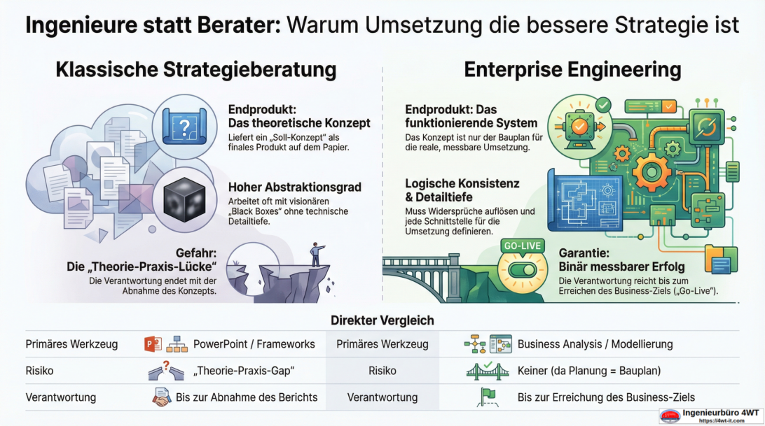 Strategieberatung vs. Business Engineering: Warum die Umsetzung die bessere Analyse erzwingt