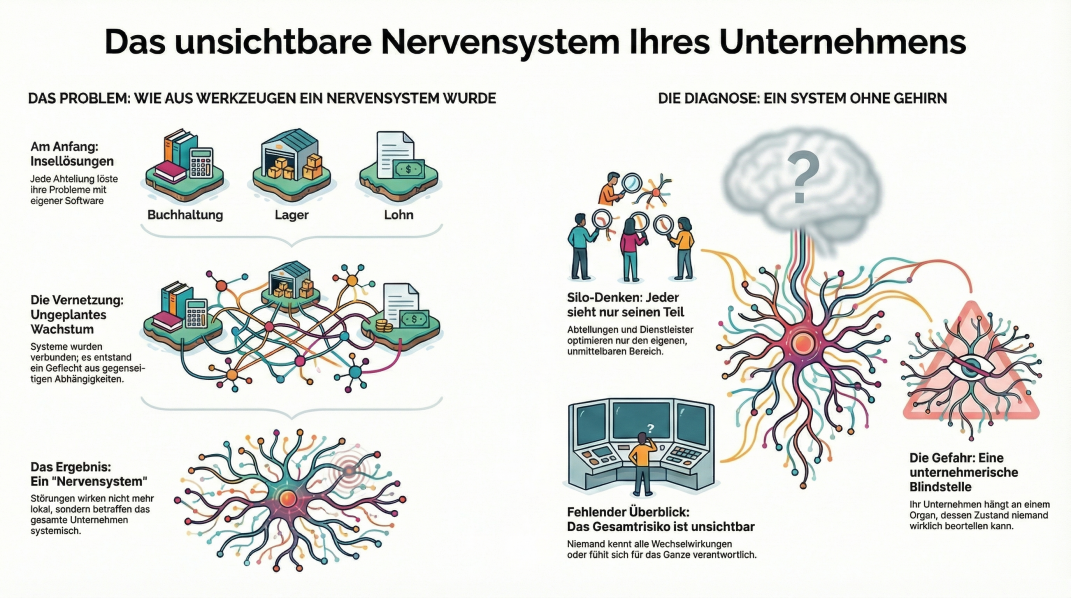 Für die IT ist dieses Geflecht Alltag.Für dich als Unternehmer ist es eine Blackbox.