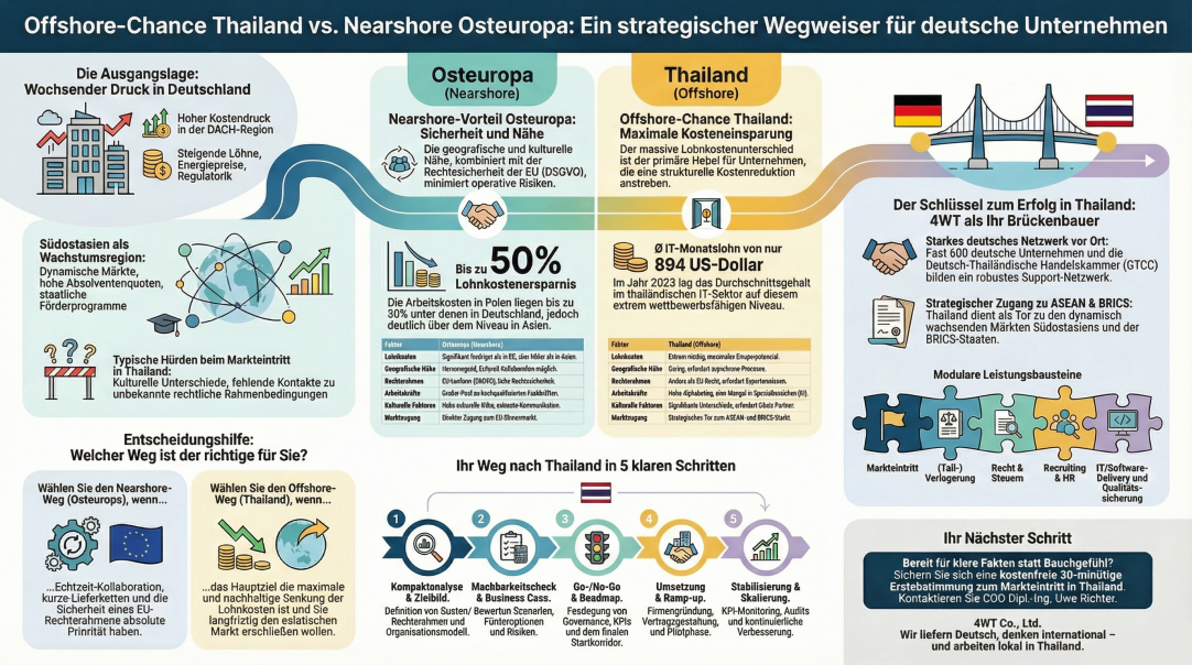 | Faktor | Osteuropa (Nearshore-Vorteil) | Thailand (Offshore-Chance) |